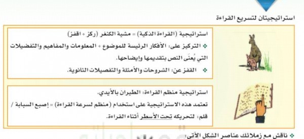 استراتيجيتان لتسريع القراءة هما القراءة المركزة والحفظ كقراءة. تتضمن القراءة المركزة الانخراط النشط في النص، والتركيز على الكلمات، وأخذ معنى النص. يمكن استخدام هذه الطريقة بشكل مستقل أو مع المعلم. الحفظ كقراءة هي إستراتيجية تسمح للقراء بالتصفح السريع للنص من خلال التعرف على النقاط الرئيسية والأفكار الرئيسية. هذه الطريقة مفيدة للقراء الذين يحتاجون إلى استيعاب كميات كبيرة من المعلومات بسرعة، كما هو الحال عند الدراسة للامتحانات. من خلال تنفيذ هاتين الاستراتيجيتين، يمكن للطلاب زيادة سرعة القراءة ومهارات الفهم.