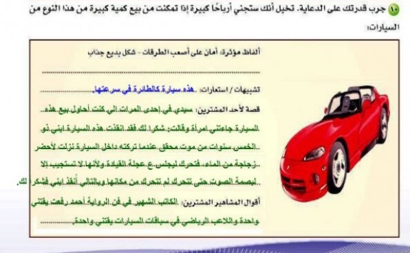 تجربة الدعاية هي أحد الوسائل المهمة في تسويق المنتجات. ويمكن لأي شخص تجربة قدرته على الدعاية من خلال تخيل أنه سيحقق أرباحاً كبيرة إذا استطاع بيع كمية كبيرة من منتج معين، مثل السيارات على سبيل المثال. ولتحقيق هذا الهدف، ينبغي على الشخص أن يستخدم ألفاظ مؤثرة لجذب انتباه المستهلكين، ويعرض المزايا الفريدة للمنتج الذي يروج له، مثل الأمان على الطرقات الصعبة. بالتأكيد، ستكون هذه التجربة ممتعة ومفيدة في نفس الوقت، حيث يتم تنمية مهارات الدعاية والتسويق، وتعرف على كيفية جذب الانتباه وإقناع المستهلكين بالمنتج المعروض.