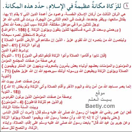 للزكاة مكانة عظيمة في الاسلام حدد هذه المكانة