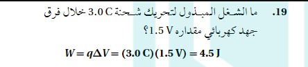 ما الشغل المبذول لتحريك شحنة 3.0 خلال فرق جهد