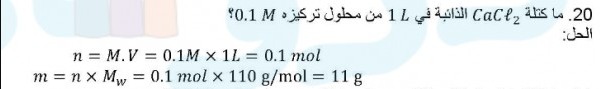 ما كتلة cacl2 الذائبة في 1l من محلول تركيزه