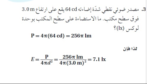 مصدر ضوئي نقطي شدة اضاءته 64 يقع على ارتفاع